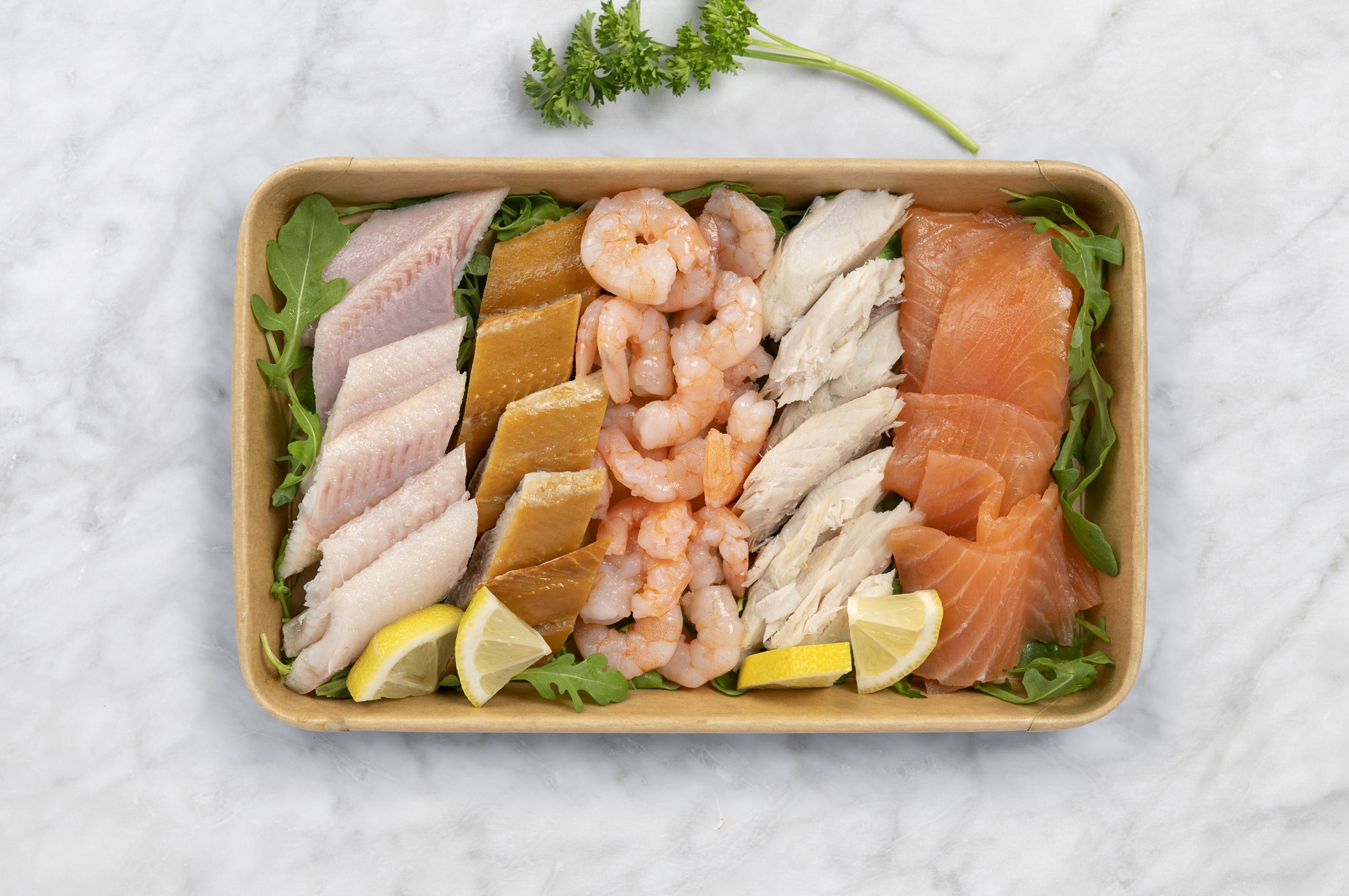 Geniet van een volledig glutenvrije én lactosevrije visschotel, samengesteld met zorg en kwaliteit. Deze heerlijke eenpersoons visschotel bevat een smaakvolle selectie van premium vissoorten: gerookte zalmfilet, ambachtelijk gerookte palingfilet, makreelfilet, brado en Noorse garnalen.
